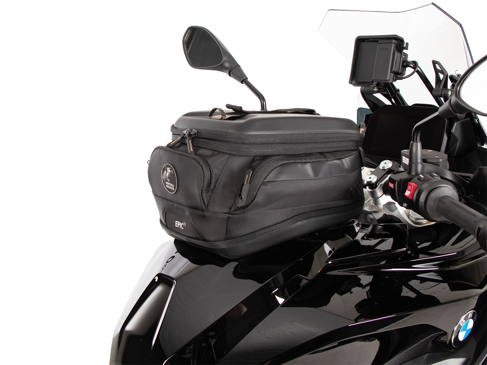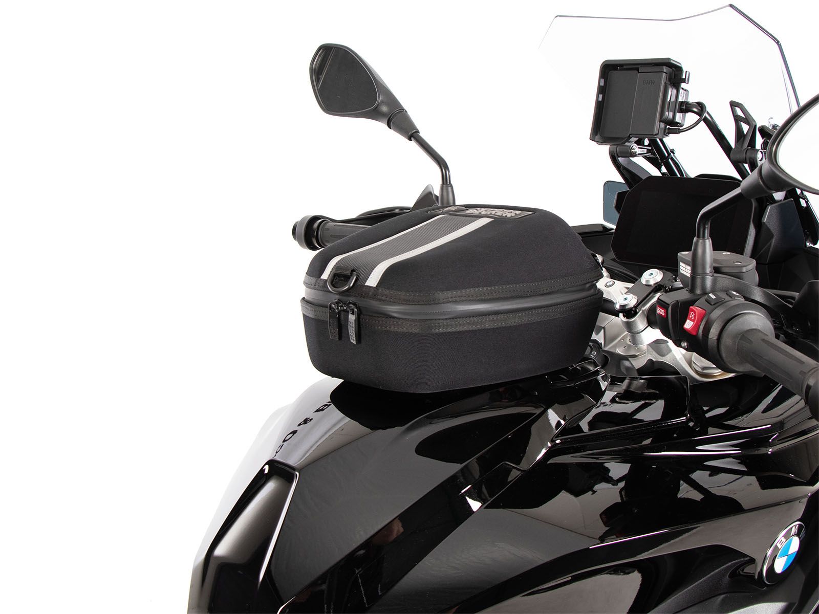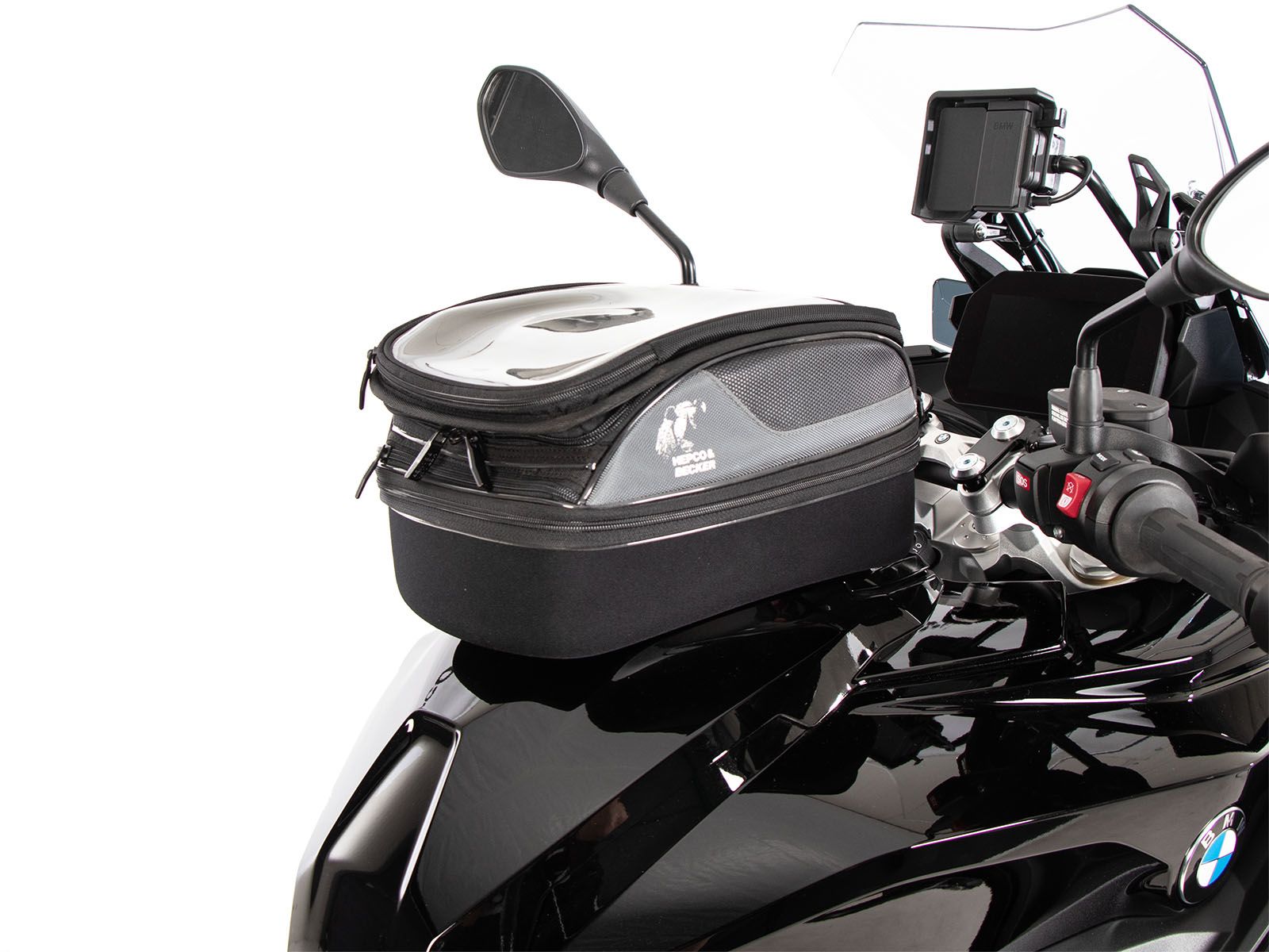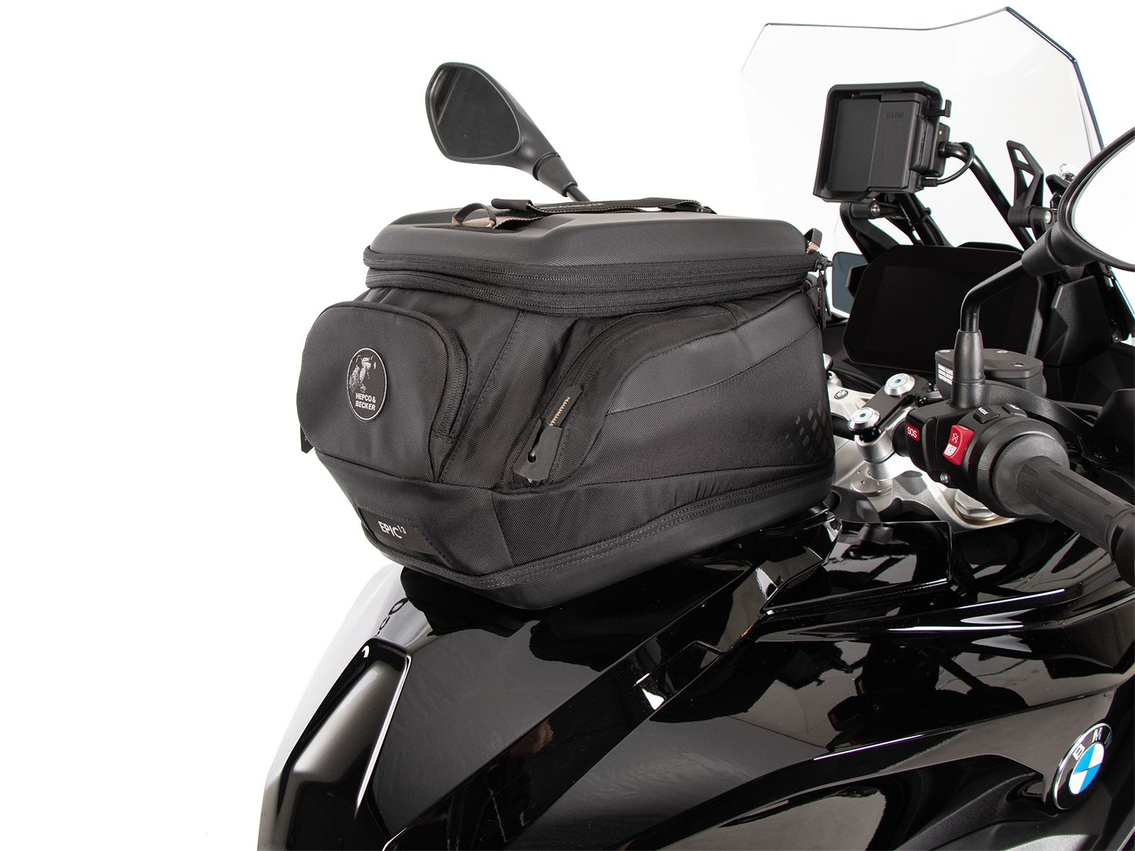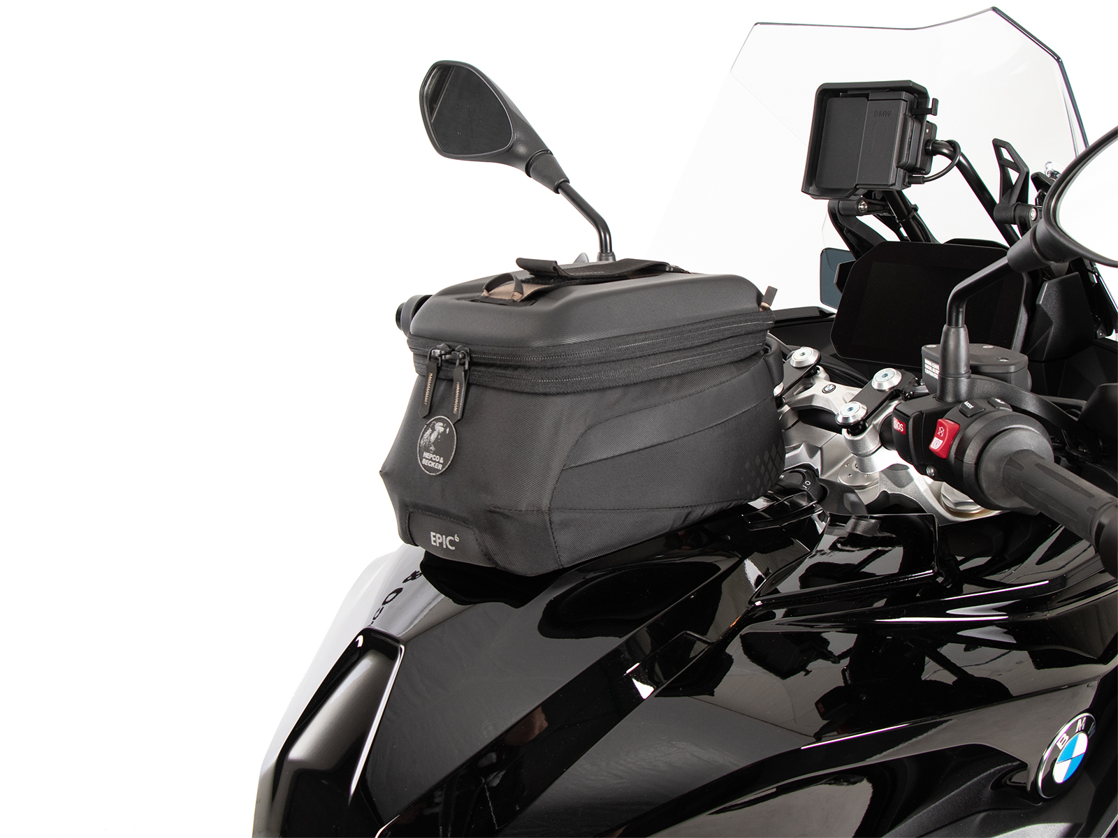 - La borsa da serbatoio Hepco & Becker si indossa semplicemente e si blocca in modo chiaramente percepibile sull'anello del serbatoio