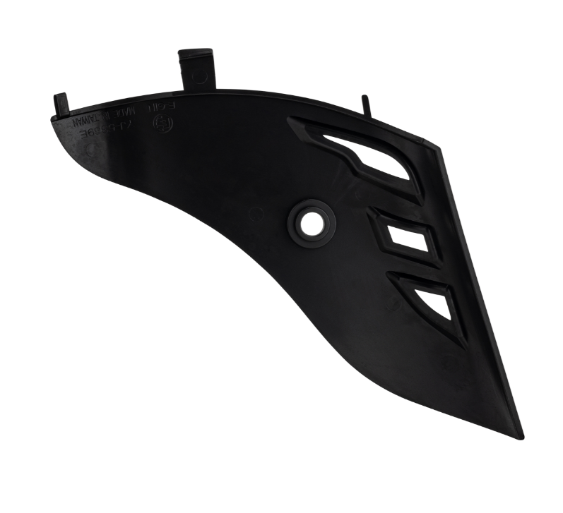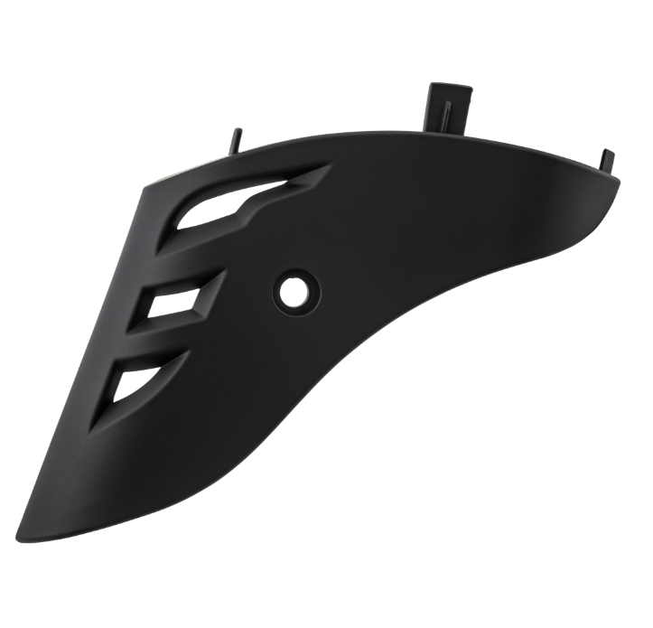 La carenatura della forcella con le sue fessure sportive è realizzata in plastica di... altro
