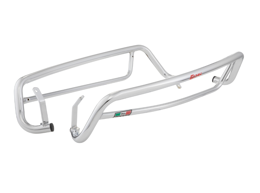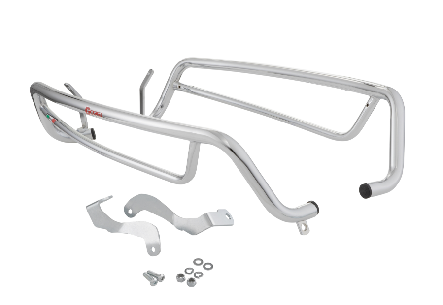 Le barre di protezione per il cofano laterale sono montate sul sottoscocca della Vespa, in modo da non limitare lo spazio per le gambe del passeggero. Nella parte posteriore, sotto il portatarga/paraspruzzi, è montata una piastra di fissaggio alla quale è fissata la barra. A causa del montaggio, le barre d'urto non sembrano molto stabili e l'effetto protettivo in caso di caduta grave non è ottimale.
