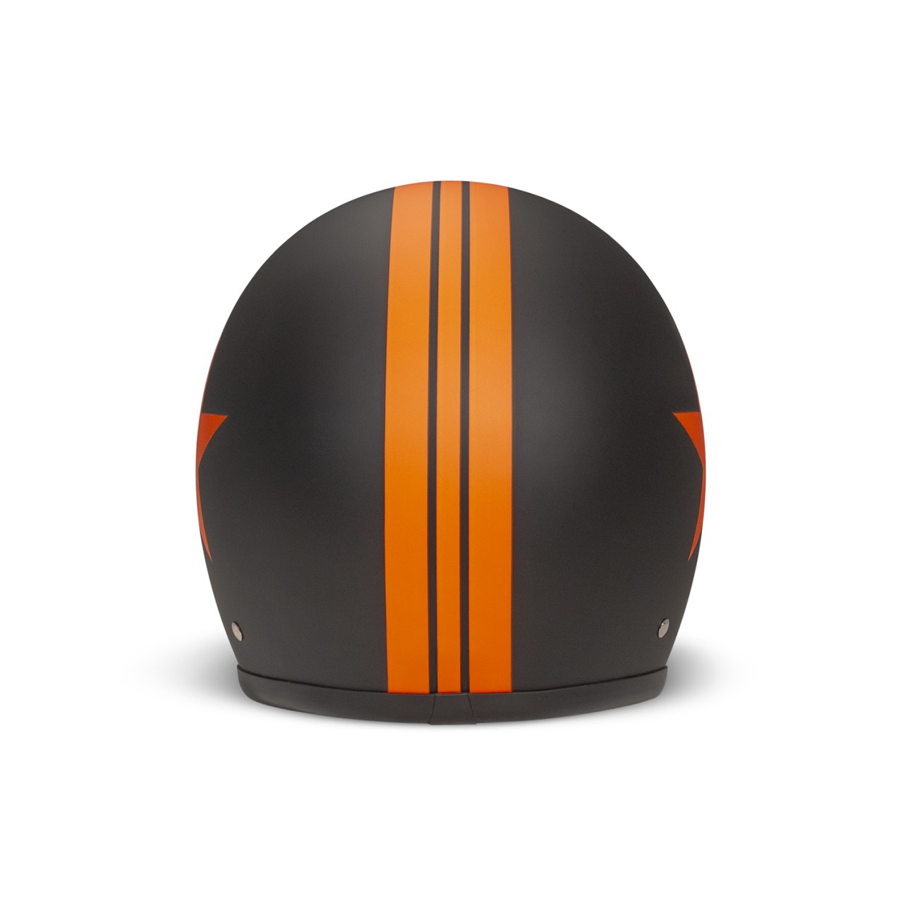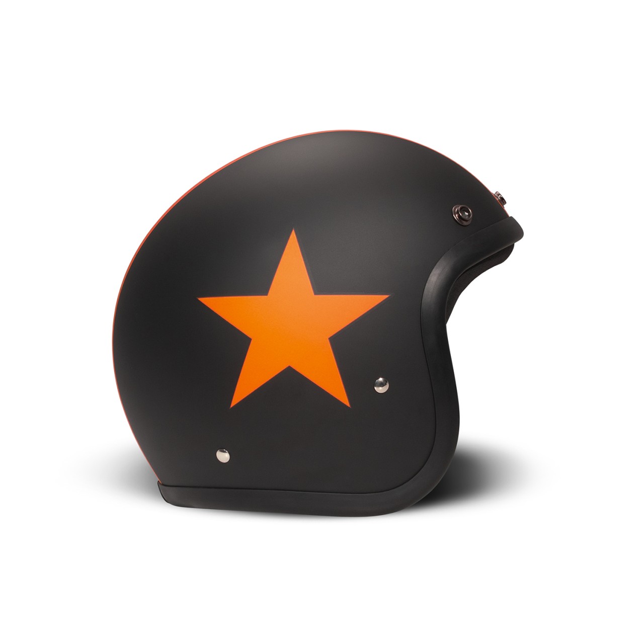 DMD casco jet Retro, nero, opaco, Star Orange, fibra di vetro, ECE 22.06