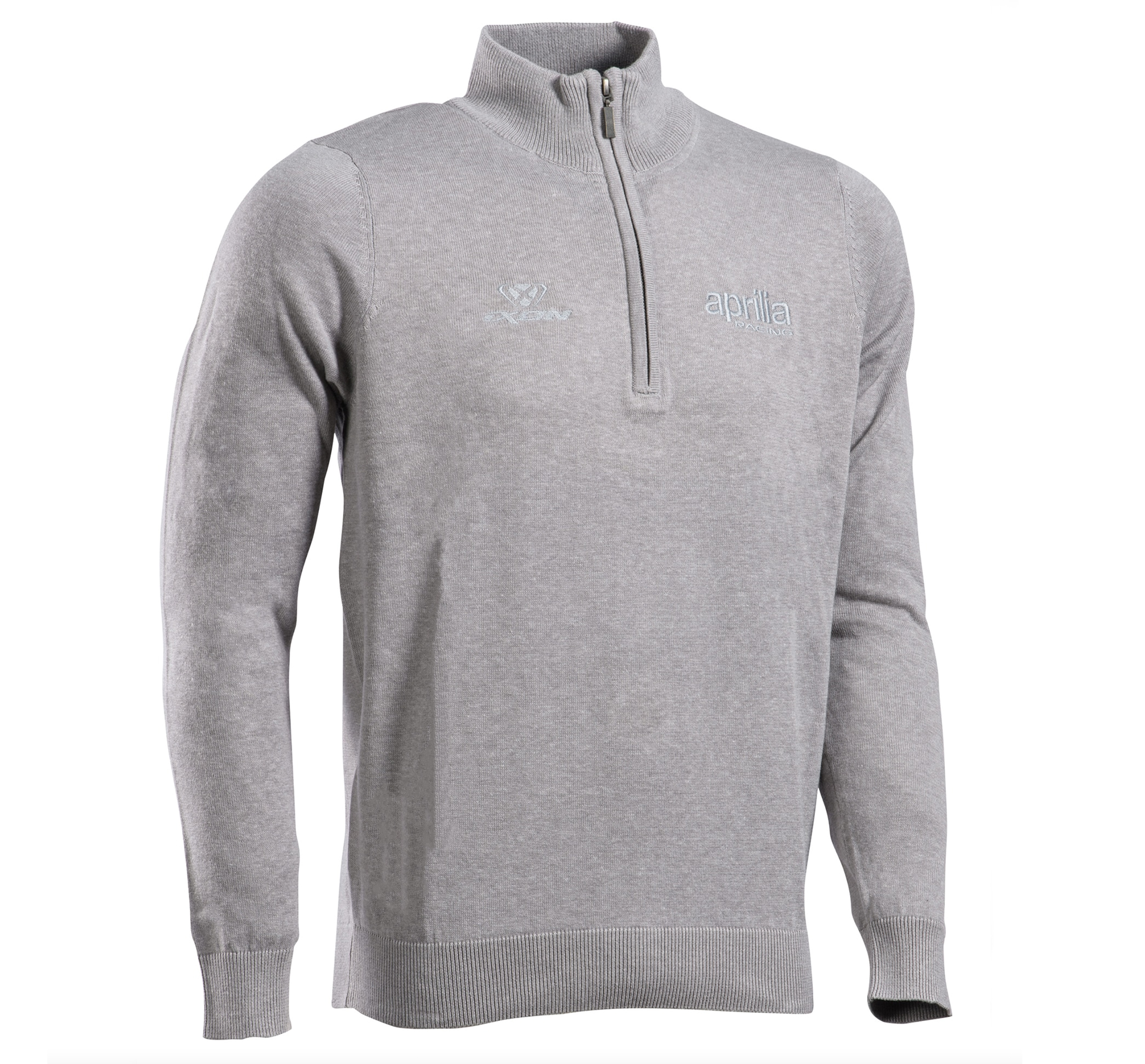 Felpa con collo maschile e 1/2 zip. Ricamo del logo Aprilia tono su tono sul petto altro