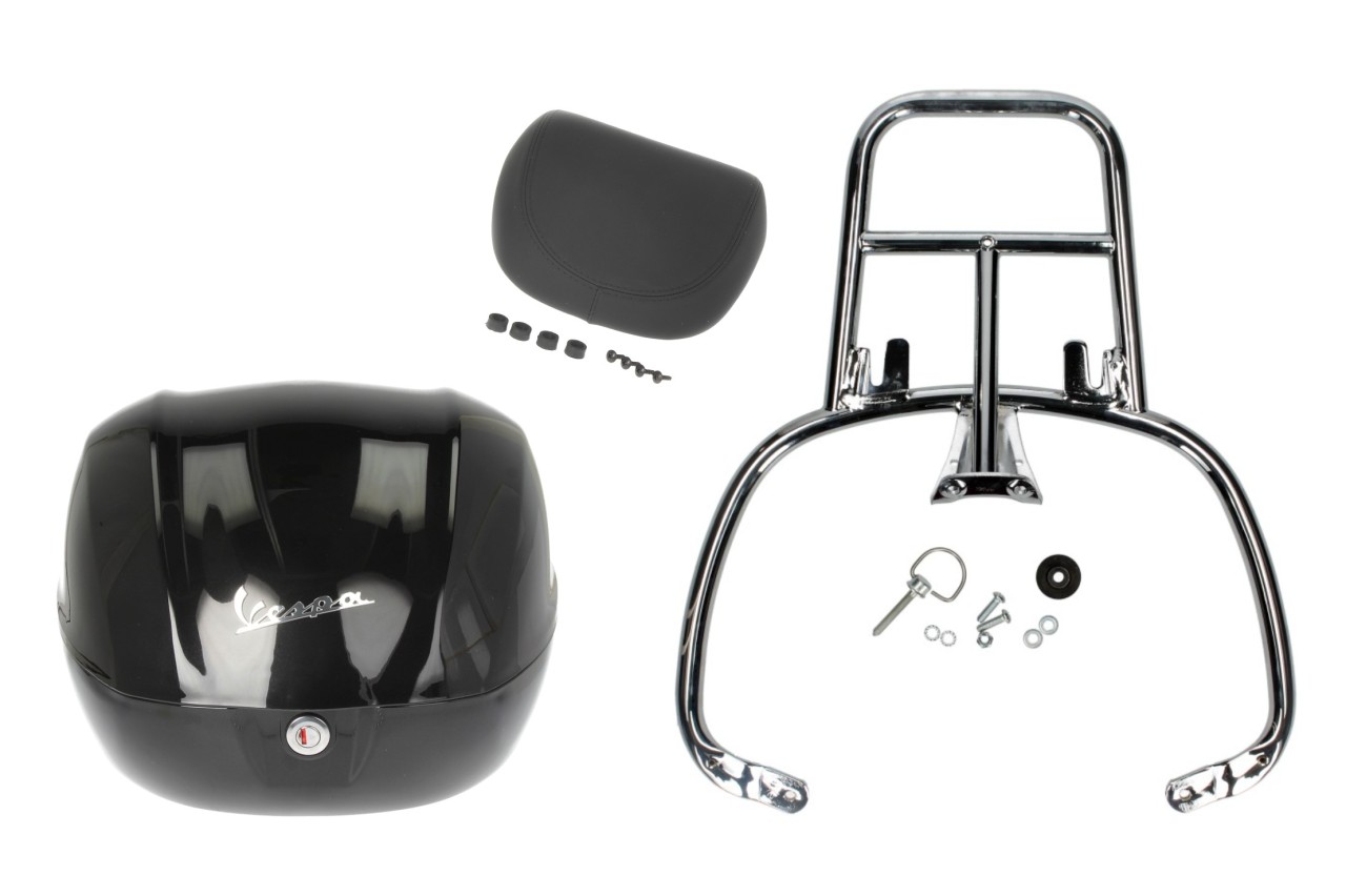 Informazione prodotto "Kit bauletto 32L nero cosmo (98/A), cuscino posteriore nero per Vespa Primavera"