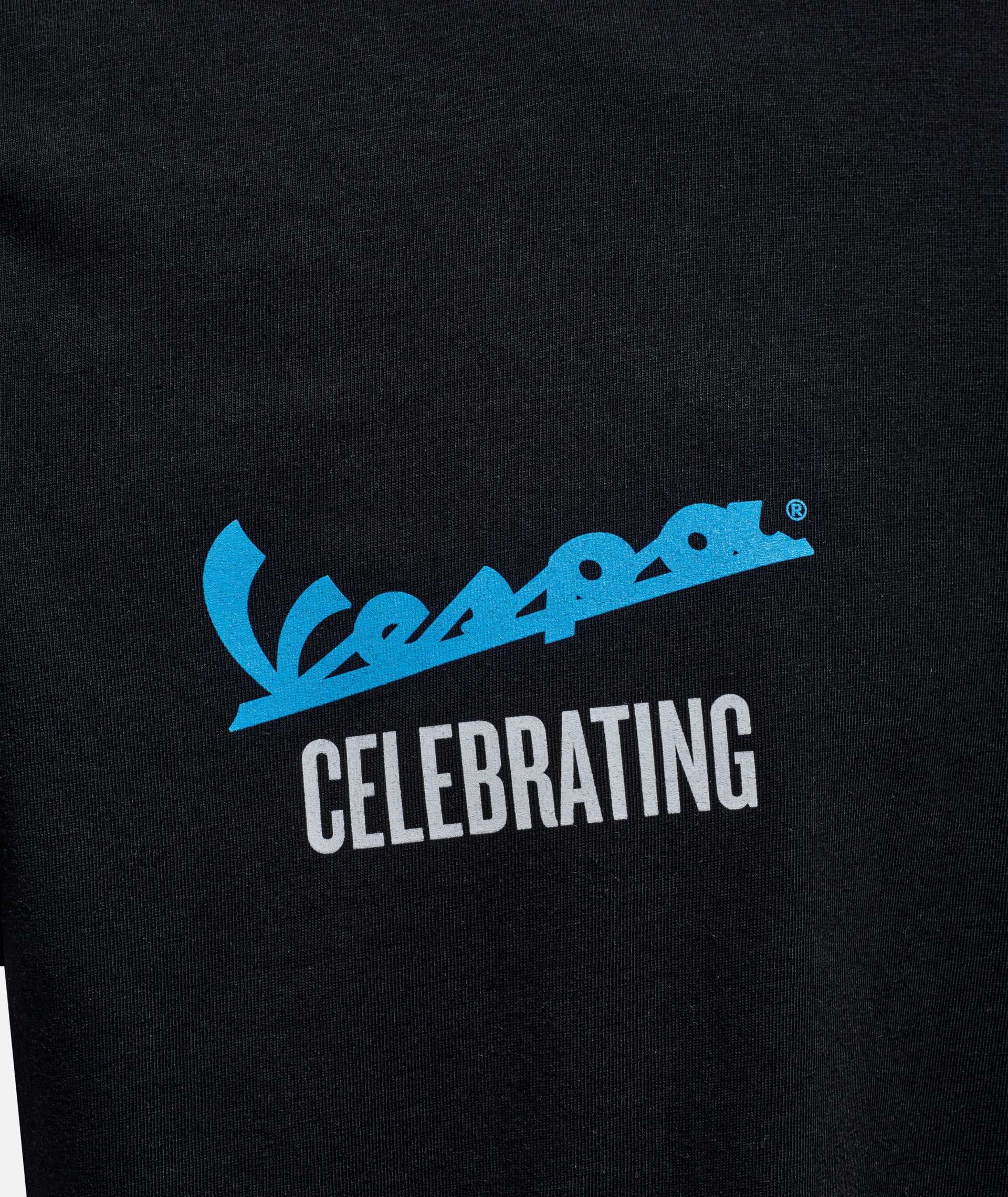 Comoda t-shirt realizzata in tessuto di cotone al 100%. Con la grafica che celebra il 140° anniversario di Piaggio e il logo Vespa sul davanti e sul retro.
