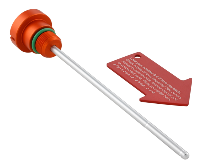 Die Öleinfüllschraube / Messstab SIP PORDOI für das Motoröl wird aus hochwertigem Aluminium CNC gefräst. Durch das schlichte Design sehen die Öleinfüllschrauben an jedem Fahrzeug schön aus und fügen sich gut in das Gesamtbild der Vespa ein. Am Messstab ist die Skala entsprechend der originalen Einfüllschrauben ausgerichtet, der passende Dichtring ist bereits angebracht. Oft werden die serienmäßigen Einfüllschrauben bei parkenden Fahrzeugen entwendet. Um Unbefugten die Arbeit zu erschweren, hat SIP an ein kleines Sicherheitsplus gedacht und liefert ein spezielles Montage-Tool mit den Einfüllschrauben welches praktischer Weise auch als Schlüsselanhänger genutzt werden kann.