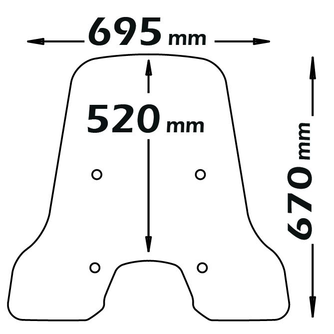 • Dimensioni: Altezza 520 mm (dal faro) x larghezza 670 mm