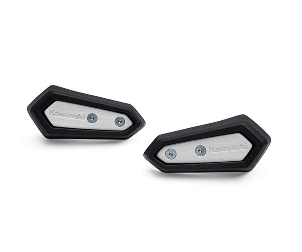 Eleganti crash pad con inserto in alluminio e logo Kawasaki. Forniscono una protezione aggiuntiva alla carrozzeria. Possono essere montati in modo semplice e veloce senza apportare modifiche alla moto.