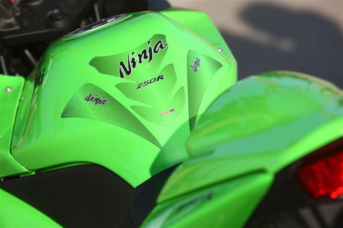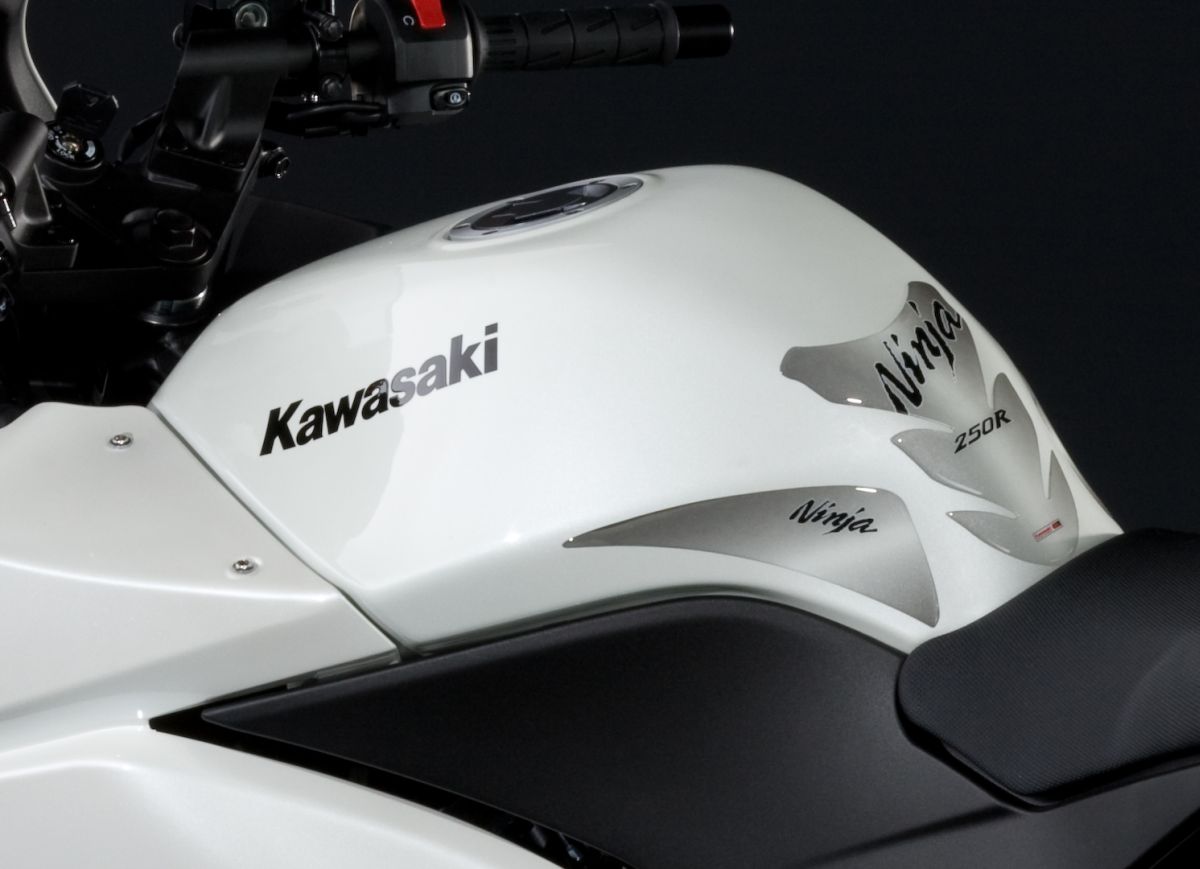 Protezione serbatoio in resina gel autoadesiva di altissima qualità. Unica e in tre parti, con il logo Ninja 250R, semitrasparente, che rivela il colore originale del serbatoio.