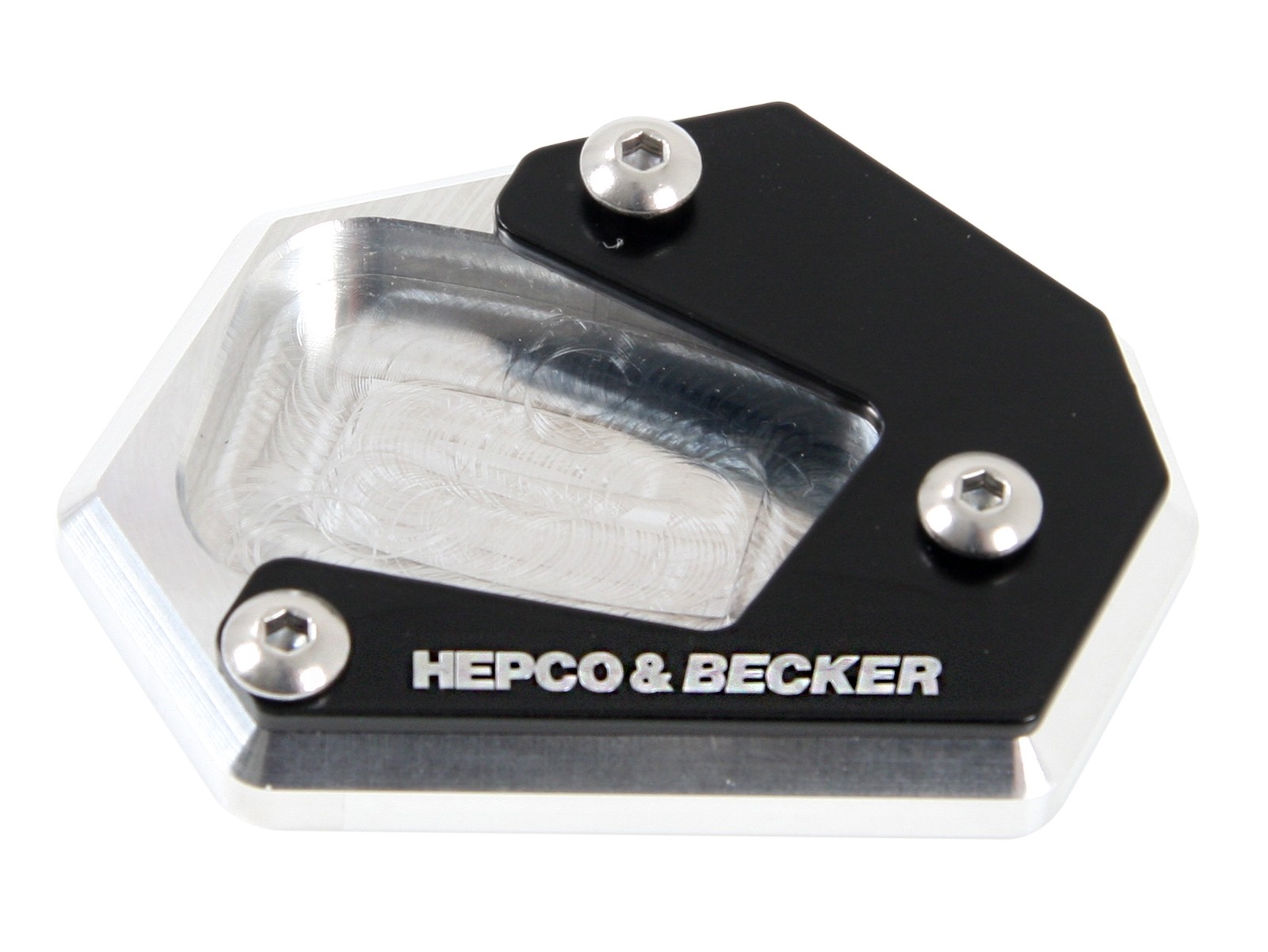 Soprattutto a pieno carico o su superfici non asfaltate, la moto può facilmente affondare e ribaltarsi sul cavalletto laterale. Per liberare la tua moto da questo pericolo, ti consigliamo una piastra per cavalletto laterale di Hepco & Becker, specifica per il modello. Grazie all'ampliamento del supporto del cavalletto laterale con una superficie circa doppia rispetto a quella del cavalletto originale, la tua moto è perfettamente protetta dagli incidenti durante il parcheggio.