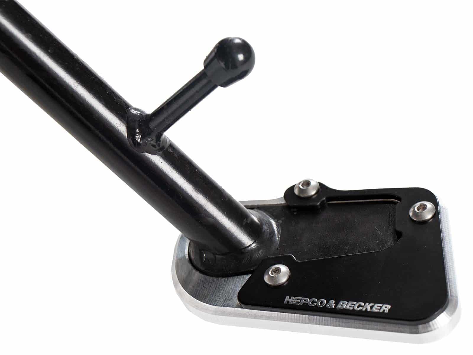 Soprattutto a pieno carico o su superfici non asfaltate, la moto può facilmente affondare e ribaltarsi sul cavalletto laterale. Per evitare che la tua moto corra questo rischio, ti consigliamo una piastra per cavalletto laterale di Hepco & Becker, specifica per il modello. Allargando il supporto del cavalletto laterale a circa il doppio della superficie rispetto al cavalletto originale, protegge perfettamentela tua moto da eventuali incidenti durante il parcheggio.