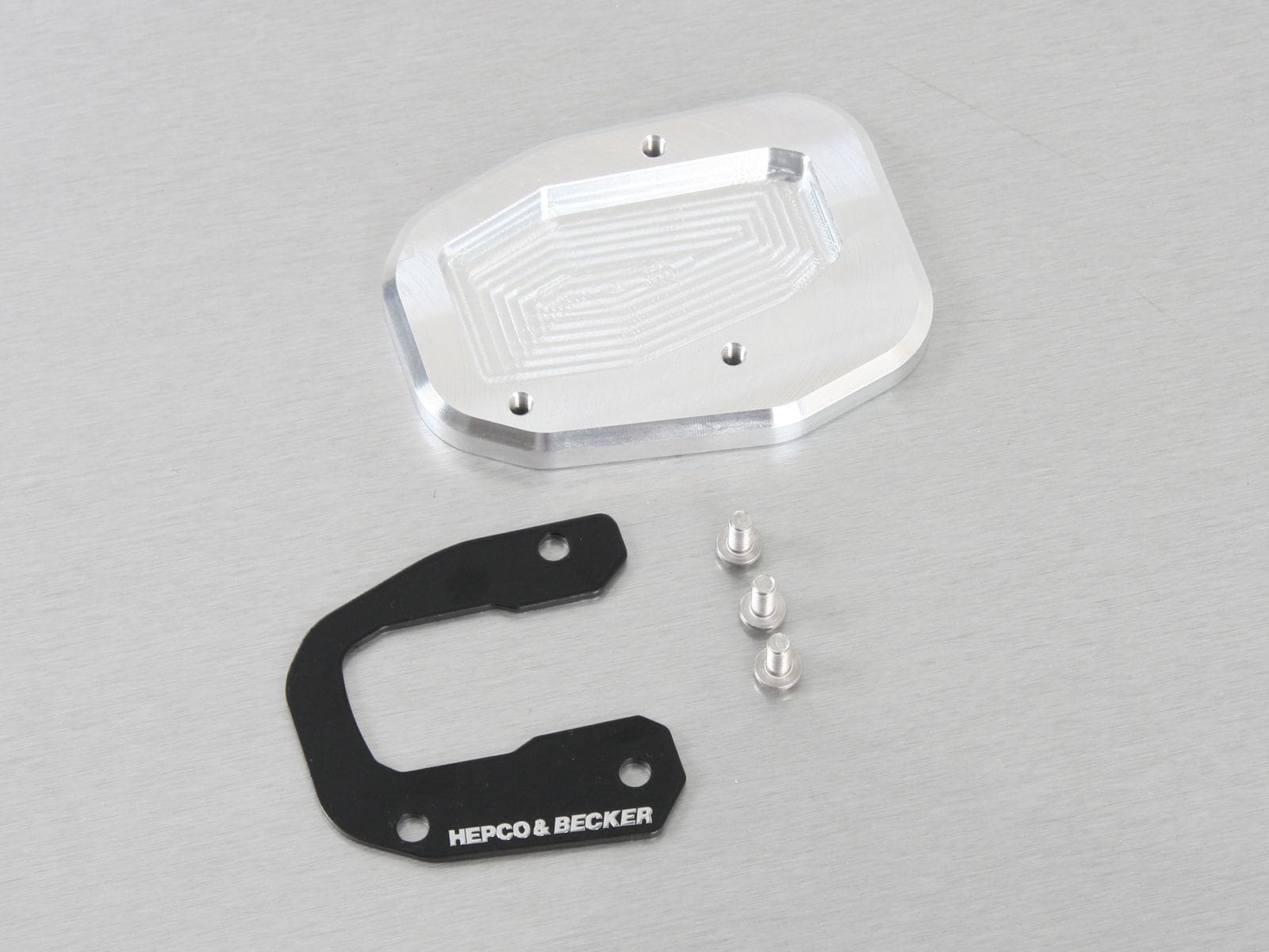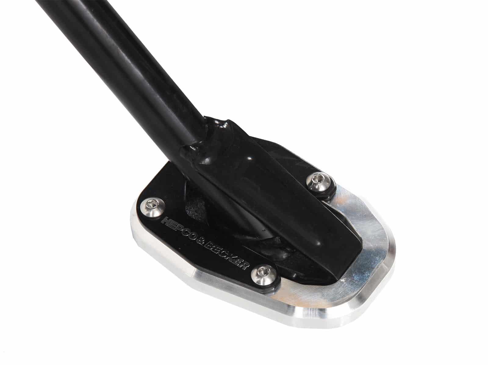 Soprattutto a pieno carico o su superfici non asfaltate, la moto può facilmente affondare e ribaltarsi sul cavalletto laterale. Per liberare la tua moto da questo pericolo, ti consigliamo una piastra per cavalletto laterale di Hepco & Becker, specifica per il modello. Grazie all'ampliamento del supporto del cavalletto laterale con una superficie circa doppia rispetto al cavalletto originale, protegge perfettamentela tua moto da eventuali incidenti durante il parcheggio.