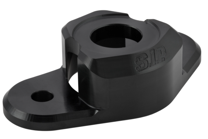 La piastra di ancoraggio dell'ammortizzatore si basa sul componente originale PIAGGIO, ma è fresata a CNC da alluminio ad alta resistenza e anodizzato nero. Rispetto all'attacco dell'ammortizzatore originale, qui l'ammortizzatore si trova circa 17,5 mm più in alto, il che significa che l'ammortizzatore si trova più in basso nel veicolo e la parte anteriore è abbassata di conseguenza l'angolo del forcellone è più piatto. Il risultante baricentro più basso e la ruota notevolmente più lunga migliorano notevolmente la stabilità di guida e la stabilità direzionale a velocità più elevate. La versione con 17,5 mm abbassamento è adatta per il SIP, ZELIONI e ammortizzatori RacingBros. Tutti gli altri ammortizzatori qui raggiungono i loro limiti e sono a contatto con la piastra di ancoraggio, per cui non può essere garantito il corretto funzionamento. A seconda dell'ammortizzatore e del gioco della sospensione anteriore, potrebbe essere necessario regolare il parafango anteriore e praticare un foro. In caso contrario, il bullone/dado di montaggio dell'ammortizzatore superiore potrebbe entrare in collisione con il parafango.