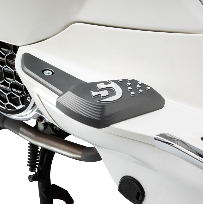 Un maggiore comfort per il passeggero è dato dalle pedane SIP. La guida può diventare rapidamente scomoda, soprattutto per un passeggero con le gambe un po' più corte. Le pedane sono avvitate saldamente e in modo stabile nel vano piedi e offrono un maggiore comfort e una tenuta ottimale. Le pedane sono fresate a CNC in alluminio di alta qualità e poi anodizzate in vari colori. Per l'installazione, si rimuovono le pedane passeggero standard e si fissano le nuove pedane SIP con le viti in dotazione: non potrebbe essere più facile.