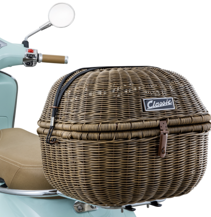 Il cestino portapacchi SIP "Classic" è una simpatica alternativa al normale bauletto compatto della Vespa ed è l'aggiunta ideale per chi ha bisogno di più spazio. La spesa al supermercato, la spesa settimanale o il casco possono essere riposti in tutta sicurezza nel cestino di 36x32x28 cm. Un elastico mantiene il coperchio ben chiuso anche su strade dissestate e la copertura antipioggia inclusa protegge il contenuto anche in caso di pioggia. È possibile fissare un piccolo lucchetto (non incluso) per proteggere gli effetti personali da dita estranee. Una tasca interna extra è inclusa nella confezione. Con un volume di poco inferiore ai 18 litri, comode maniglie per il trasporto e una chiusura a strappo, è la compagna perfetta per ogni tipo di shopping. La borsa può essere portata comodamente con sé, riempita e poi riposta nel cestino. La borsa interna "Classic" ha una piccola tasca esterna per gli occhiali da sole, il cellulare o le chiavi. La borsa e il cestino, coordinati per colore, formano un'unità armoniosa.