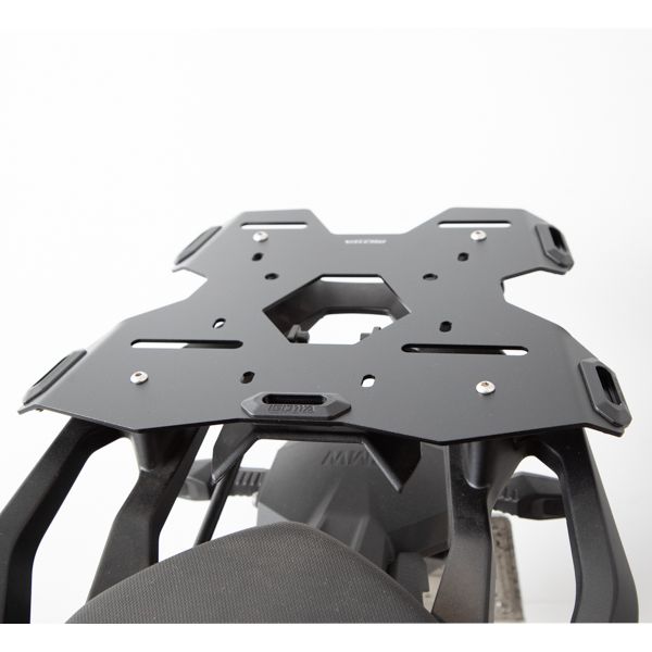 Un portabagagli in acciaio con doppio trattamento antiruggine. Il design è stato sviluppato sia per essere utilizzato come portapacchi classico per fissare uno zaino o una borsa con gli occhielli corrispondenti sul bordo, sia per montare un bauletto con una piastra corrispondente (articolo non incluso). Nei fori di fissaggio delle cinghie sono incluse anche delle parti in plastica preassemblate per evitare che le cinghie sfreghino durante l'uso.