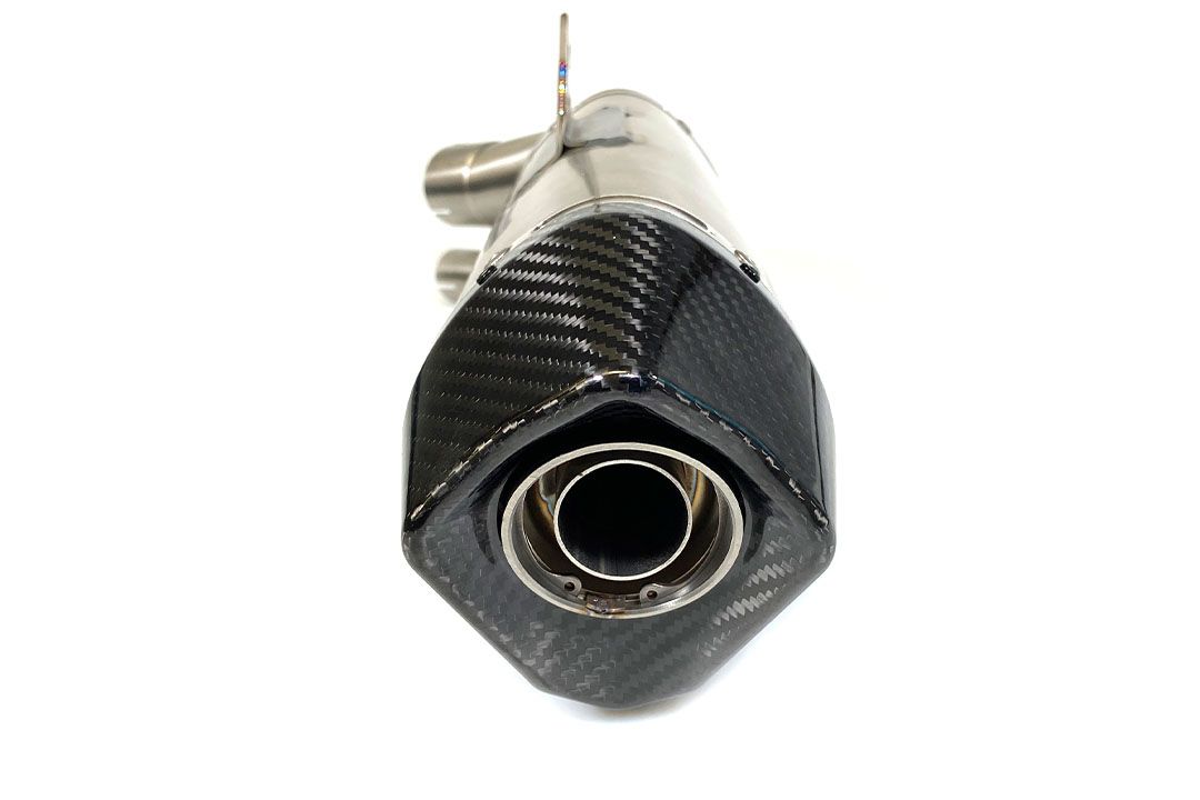 I silenziatori posteriori RACE-TECH sono stati i primi sistemi di scarico a presentare una forma a diamante o a losanga, sostituendo la forma ellittica adottata da Arrow nel corso degli anni. La nuova forma ha permesso di ridurre notevolmente le dimensioni rispetto ai sistemi di scarico precedenti, mantenendo la stessa sezione trasversale. Questo si traduce in un enorme risparmio di peso senza dover scendere a compromessi con il volume. Il risultato è un suono nitido e prestazioni al top. Il silenziatore posteriore è rifinito ad arte con il processo di saldatura TIG.