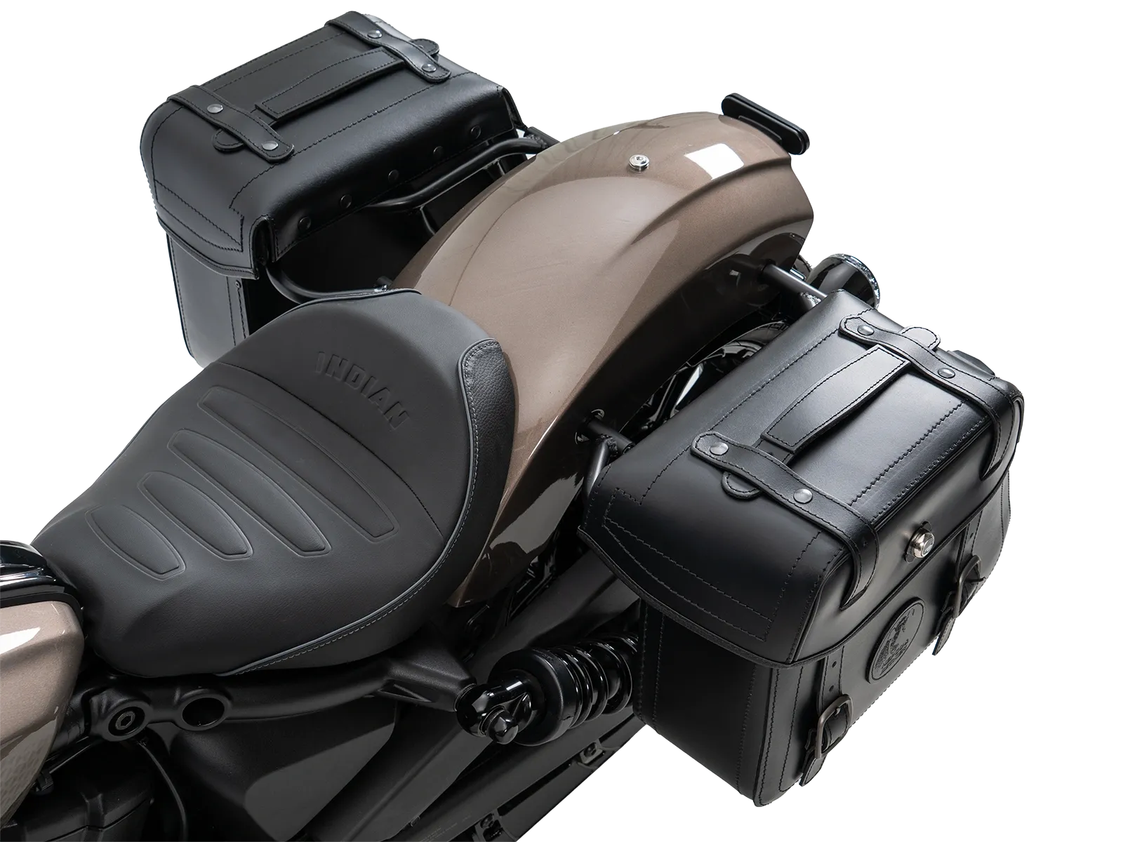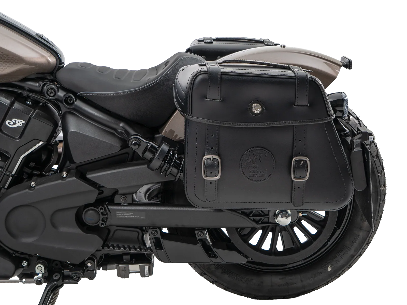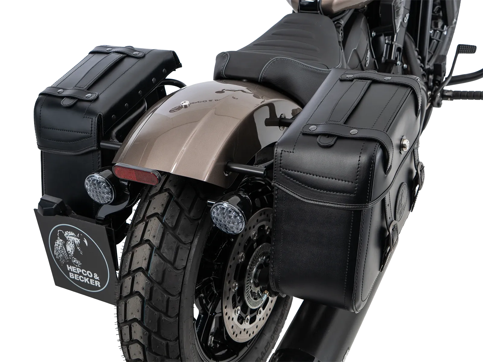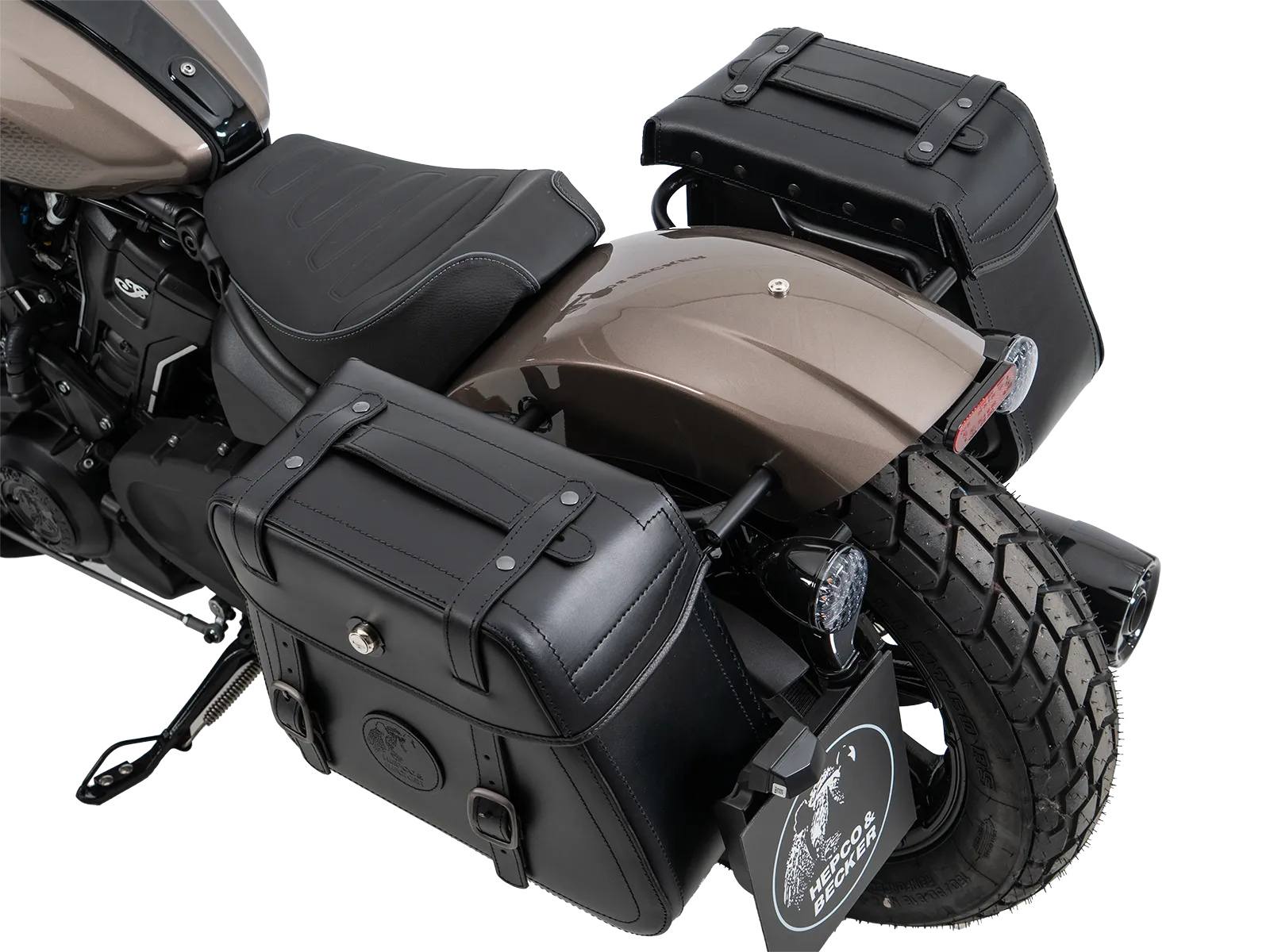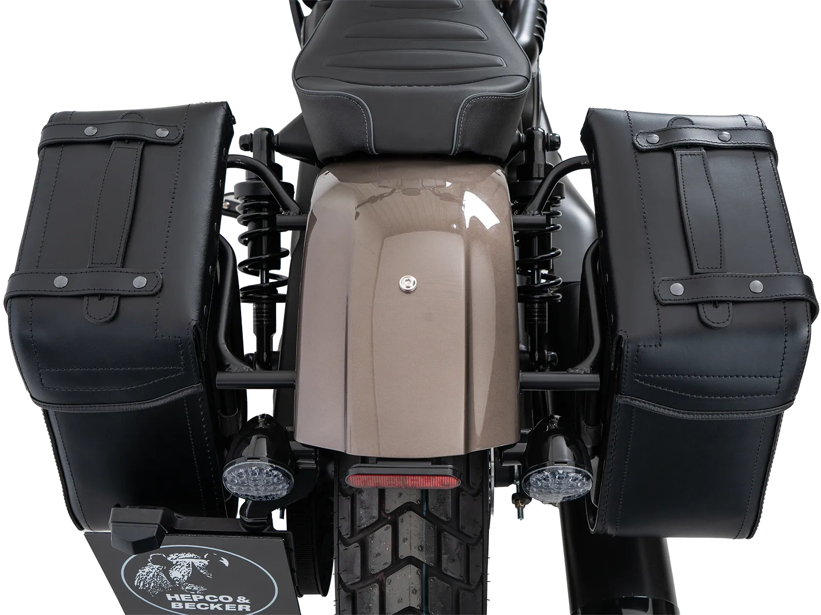 Le borse in pelle Hepco&Becker Rugged Cutout sono fissate al portapacchi laterale Rugged Cutout specifico per ogni modello. Entrambe le borse sono dotate di un pannello posteriore appositamente ritagliato per ridurre la larghezza complessiva di modelli di moto appositamente selezionati con un ampio ammortizzatore sporgente . Le borse sono fissate al portapacchi per mezzo di una chiusura a sgancio rapido all'interno della borsa. Se il portapacchi e le borse vengono ordinati insieme, Hepco&Becker adatta la chiusura a sgancio rapido al rispettivo portapacchi e la monta sulla borsa.