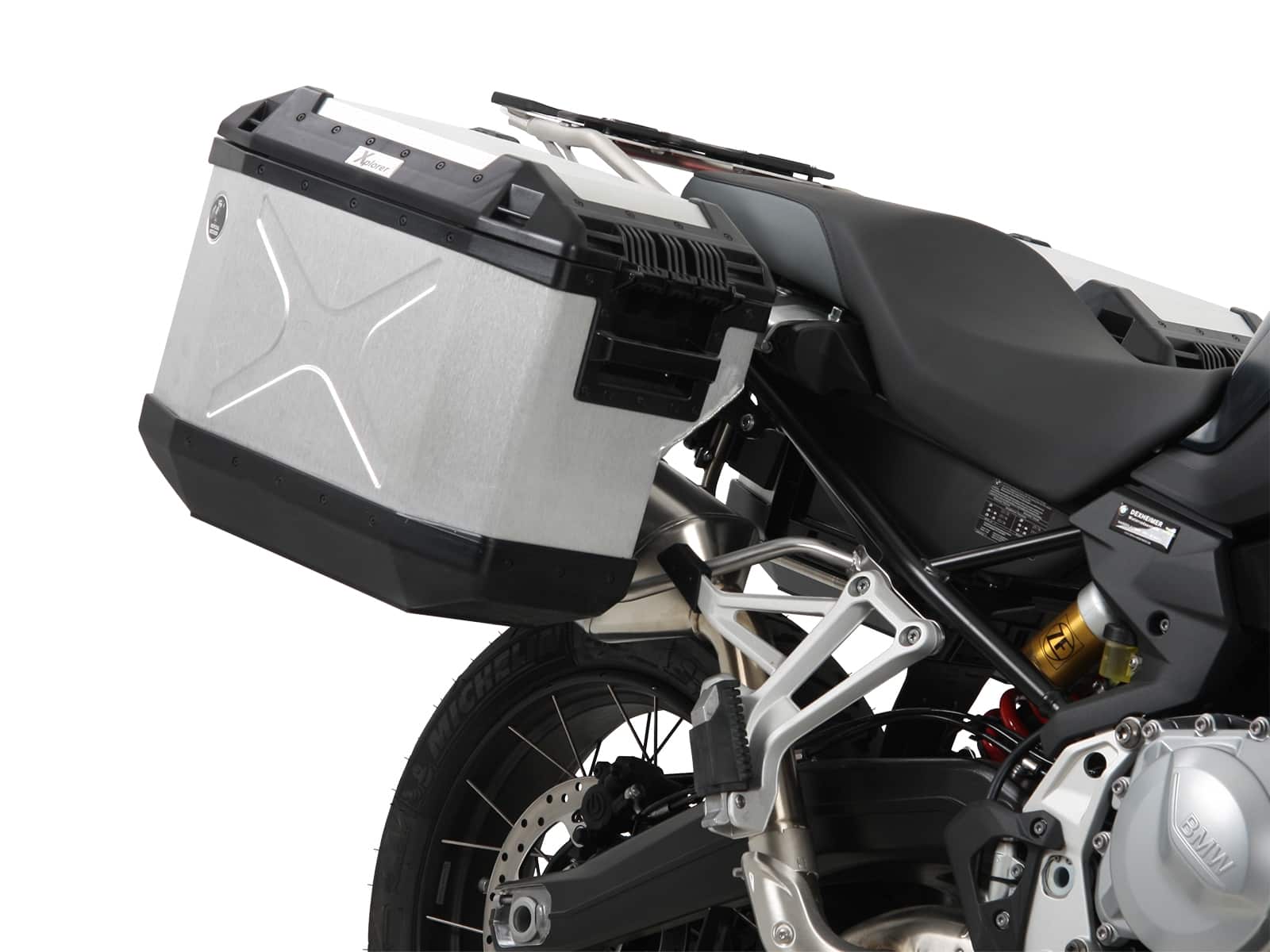 Informazione prodotto "Set portavaligie Cutout in acciaio inox incluso set di valigie Xplorer Cutout in argento per F 850 GS Adventure"