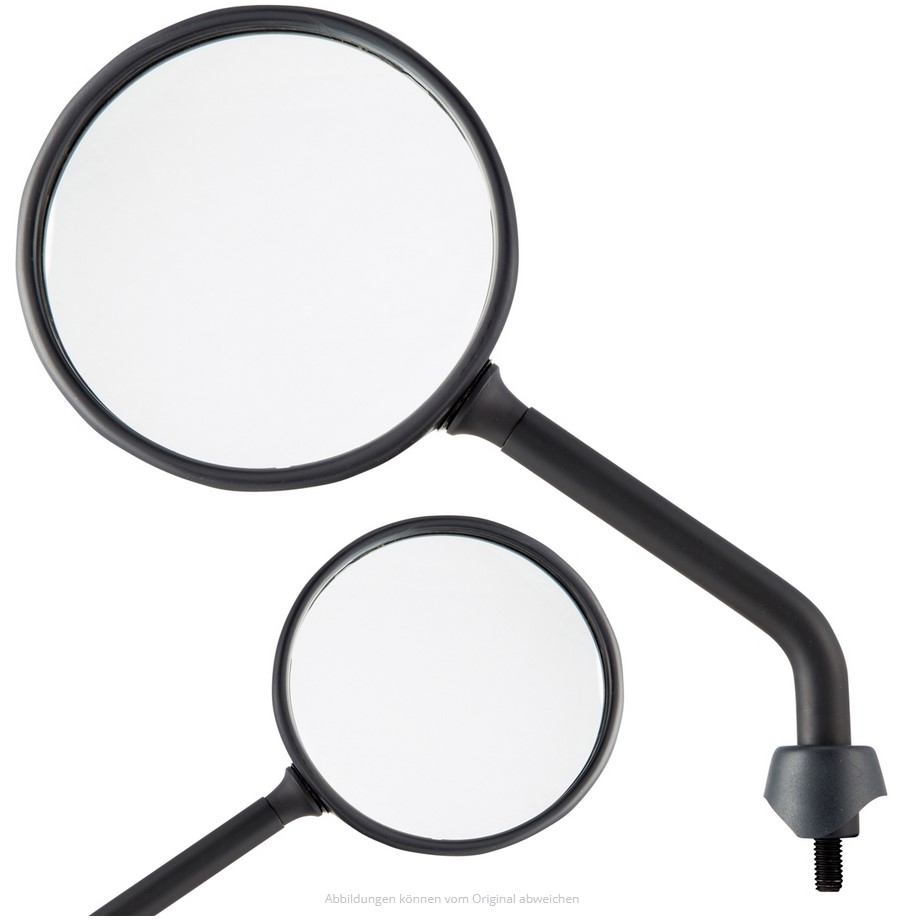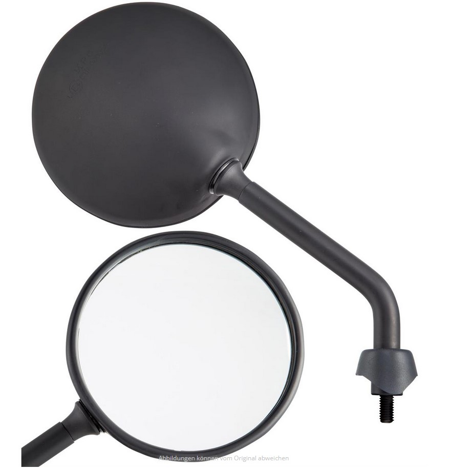 Gli specchietti Shorty sono mantenuti nella forma originale degli specchietti Vespa, ma hanno un braccio dello specchietto molto più corto. Con una lunghezza della leva inferiore di circa 5-6 cm, si inserisce perfettamente nel quadro generale della Vespa. La testa dello specchio può essere regolata utilizzando lo snodo sferico, il campo visivo non è compromesso nonostante la leva più corta. Lo specchietto ha un numero E e può essere guidato su strada senza problemi. La consegna include cappucci in gomma e controdadi.