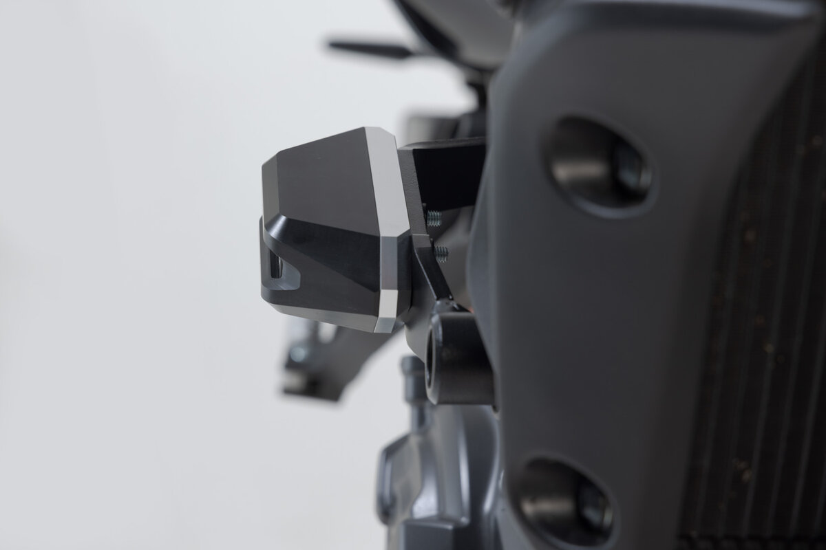 I crash pad del telaio offrono un'ulteriore protezione in caso di caduta. La forma, la superficie e il materiale garantiscono eccellenti proprietà di scorrimento e riducono i danni alla MT-07 / Tracer. La robusta sottostruttura in alluminio è facile da montare e, se necessario, i pattini abrasivi fresati a CNC in poliammide resistente all'abrasione possono essere sostituiti rapidamente.