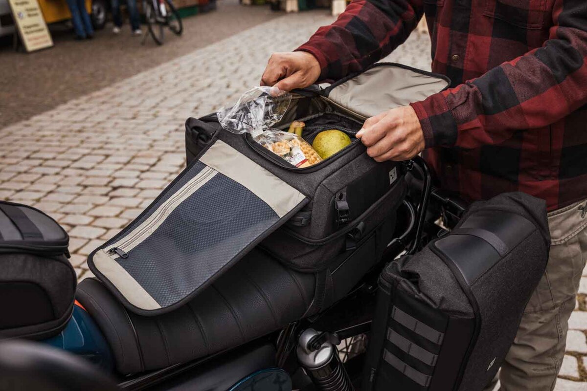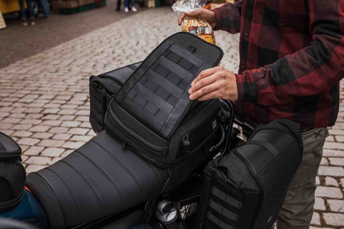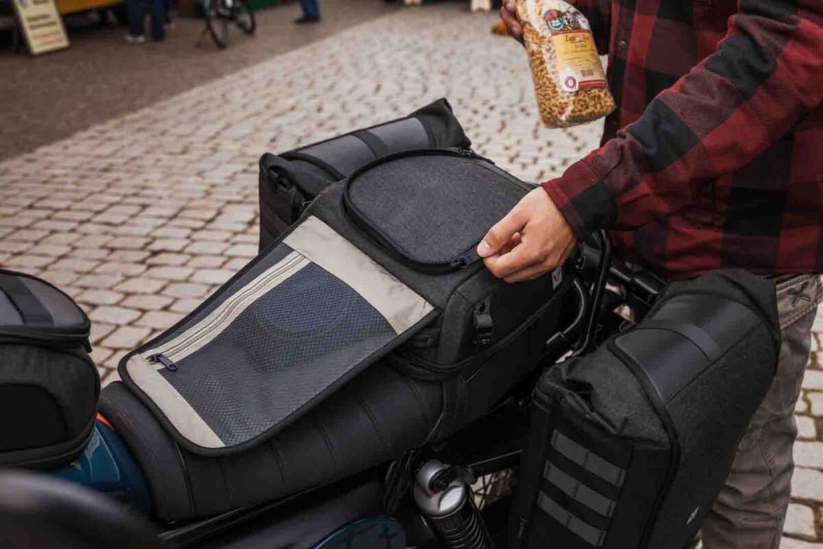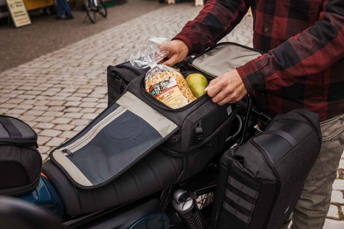 La nuova borsa posteriore Legend Gear LR3 colpisce per il suo design compatto e l'elevata flessibilità. Con un volume base di 6 litri, si adatta perfettamente al sellino del passeggero o al portapacchi delle moto sportive. Se necessario, il volume può essere ampliato fino a 12 litri: l'ideale se hai bisogno di più spazio per riporre le tue cose in viaggio. Che si tratti di una gita di un giorno, di un breve viaggio o di un uso quotidiano, LR3 è il tuo pratico compagno se vuoi trasportare un bagaglio leggero in modo sicuro e a portata di mano. Preparati per il tuo prossimo viaggio di scoperta con un sistema di bagagli facile da maneggiare e allo stesso tempo bello da vedere. Le nostre borse posteriori Legend Gear, ridisegnate, offrono uno spazio intelligente per il tragitto verso il lavoro, la corsa serale o il tour del fine settimana. Il bagaglio è ora disponibile in un classico design completamente nero con un look discreto, è estremamente robusto e allo stesso tempo piacevolmente morbido, quindi perfetto per tutti coloro che apprezzano lo stile e la durata. Sviluppato con un resistente tessuto di poliestere che conserva il carattere naturale del cotone, il materiale vanta valori UV superiori alla media ed è resistente all'acqua grazie al rivestimento in PU all'interno. Dettagli perfetti come le cerniere rivestite in similpelle creano un concetto complessivo armonioso e dal valore di riconoscimento.