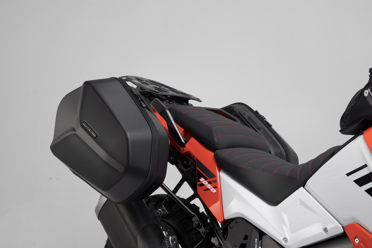 Design aerodinamico, peso ridotto, dettagli confortevoli: la borsa laterale AERO ABS colpisce per la sua forma snella e la superficie moderna e particolarmente facile da pulire. Le valigie laterali in plastica ABS per impieghi gravosi offrono 25 l di spazio di stivaggio su ciascun lato con un peso di soli 1,8 kg e, in combinazione con i portapacchi laterali rimovibili di SW-MOTECH, sono la soluzione di bagaglio ideale per i viaggiatori sportivi in moto.