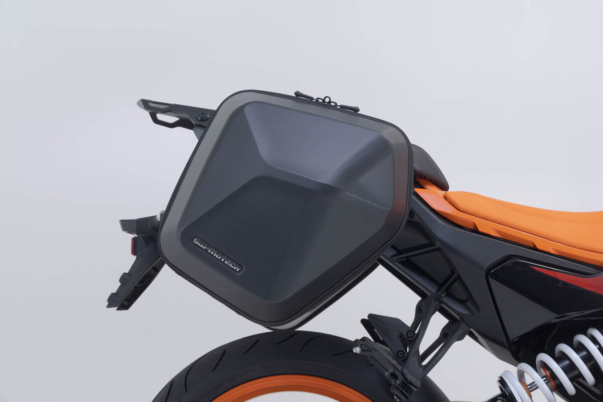 Con questa combinazione di borse laterali SLC e borse laterali URBAN ABS, SW-MOTECH rende la KTM 125 / 390 Duke pronta per i viaggi più lunghi con più bagagli.